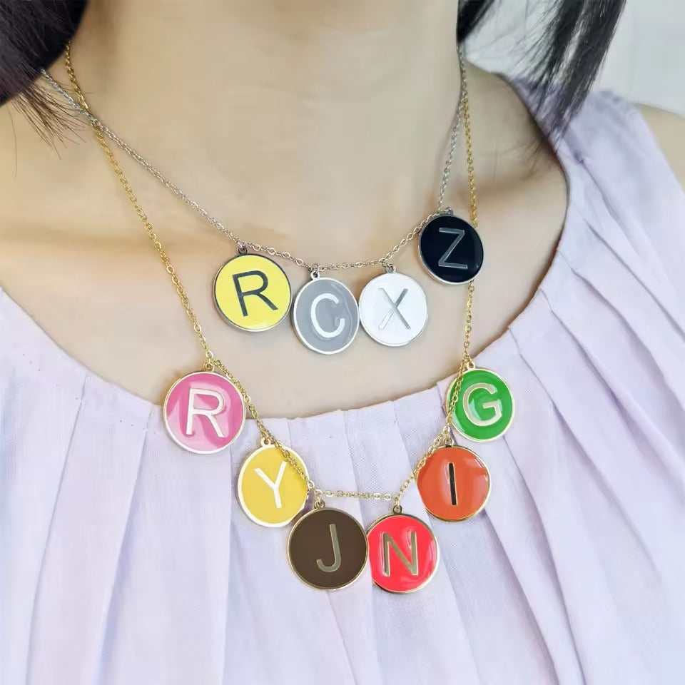 20mm Disc Initial Letter Charm Personalized Enamel Necklace