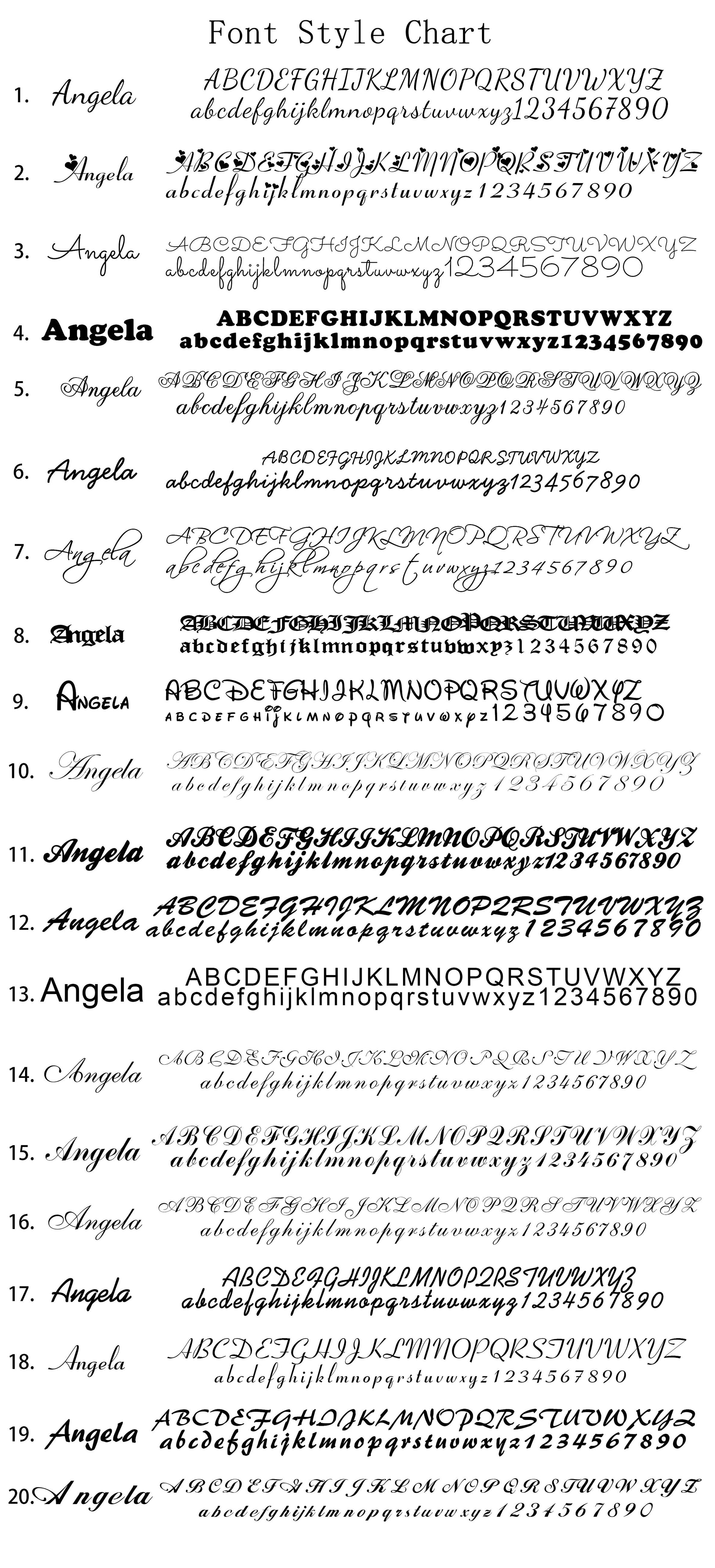 If a font is not given, you will receive the font that is pictured for your order which is Roman font