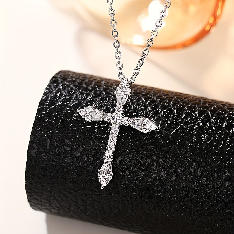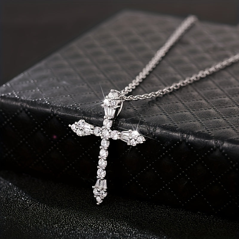 Delicate Zirconia Inlaid Cross Pendant Necklace