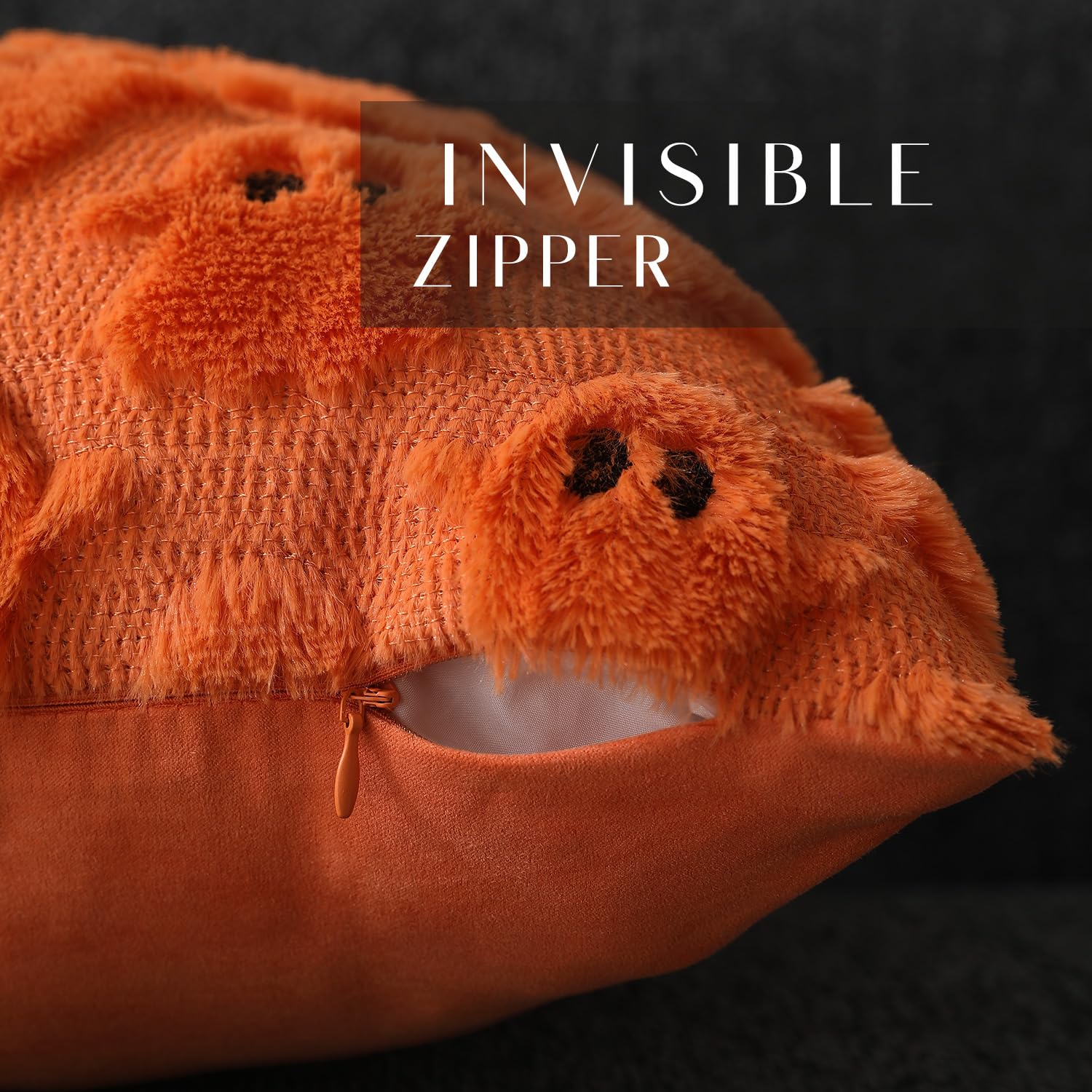 To insert the pillow, fold the pillow core in half, slide it into the cover, then unfold and adjust the corners before zipping it closed—quick and hassle-free.