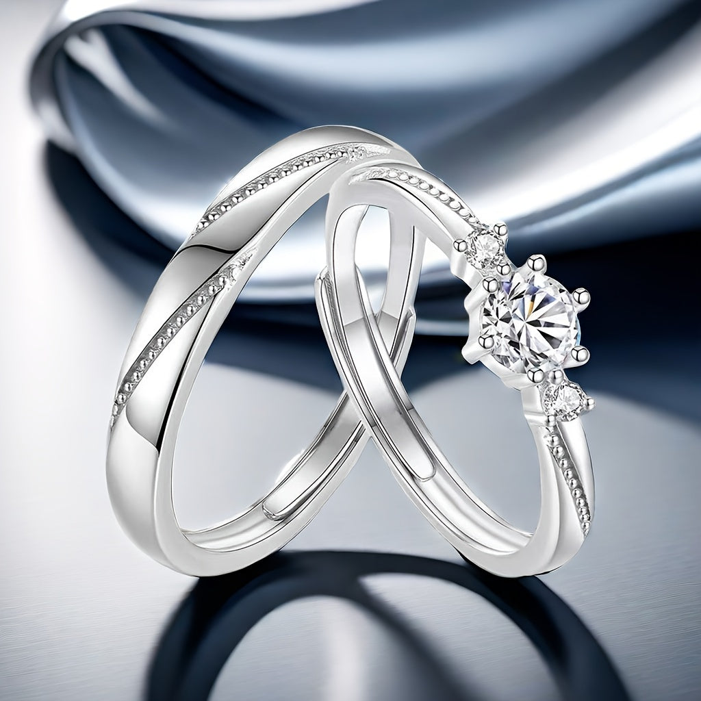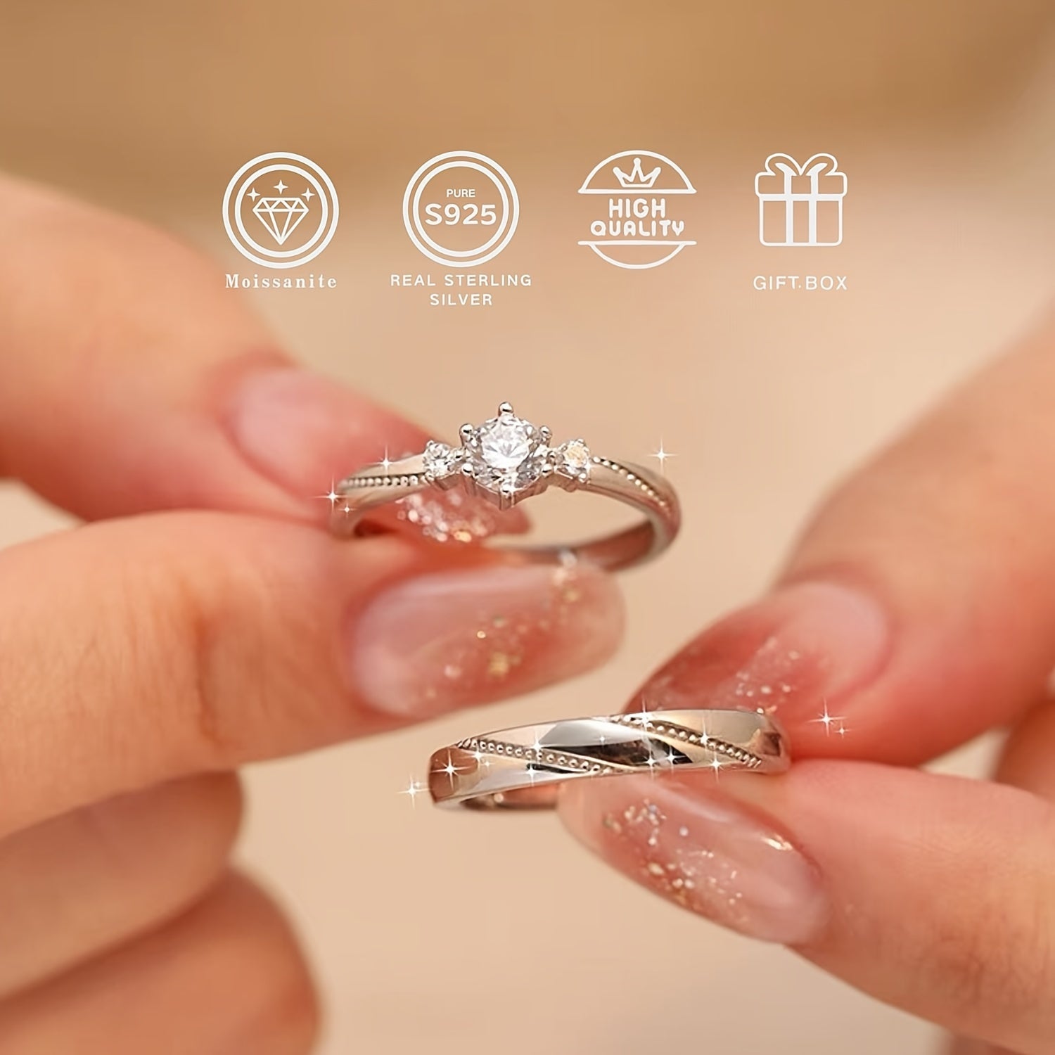 2pcs Exquisite 925 Sterling Silver 0.5 Carat Moissanite Couple Rings