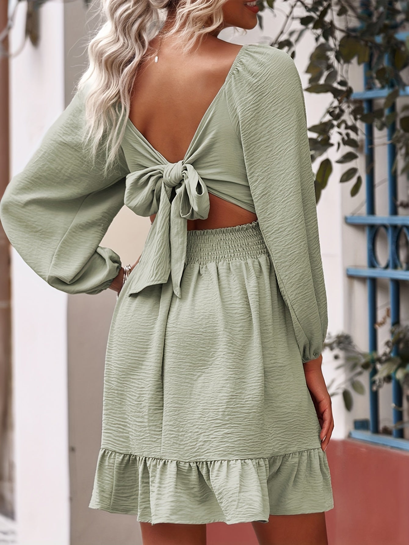 Elegant Ruffle Hem Lantern Sleeve Dress