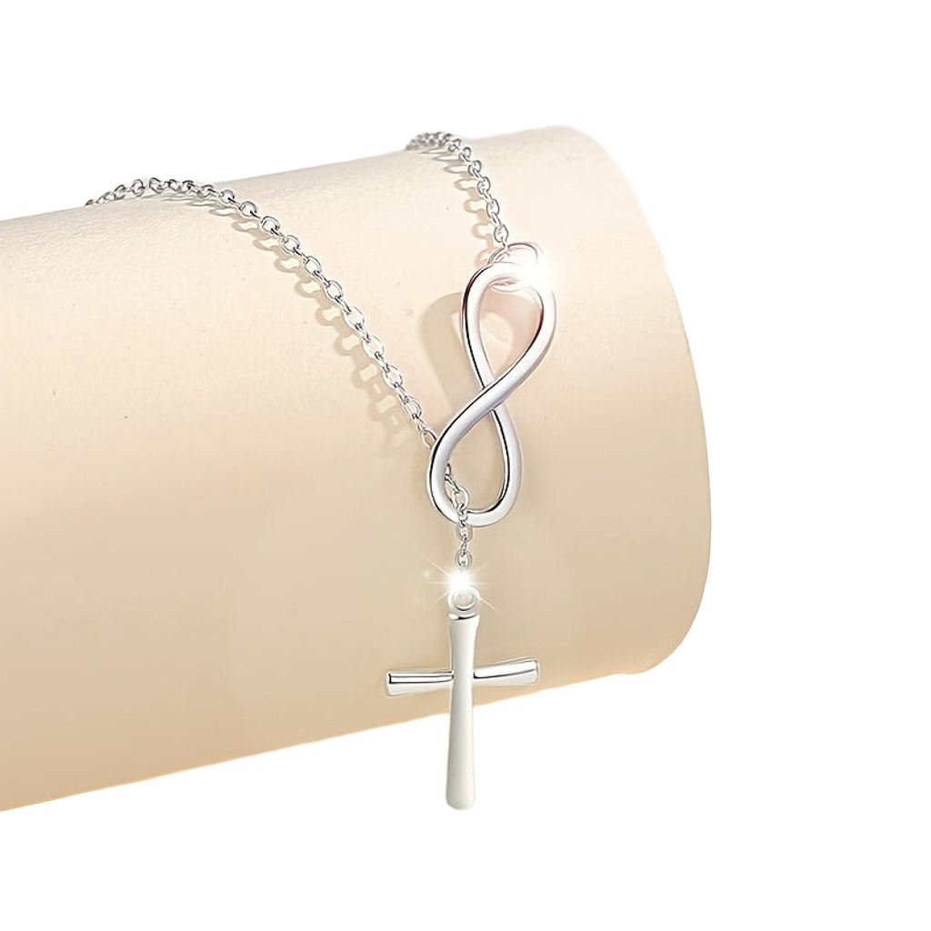 Pure Sterling Silver Infinity Lucky 8 Cross Pendant Necklace