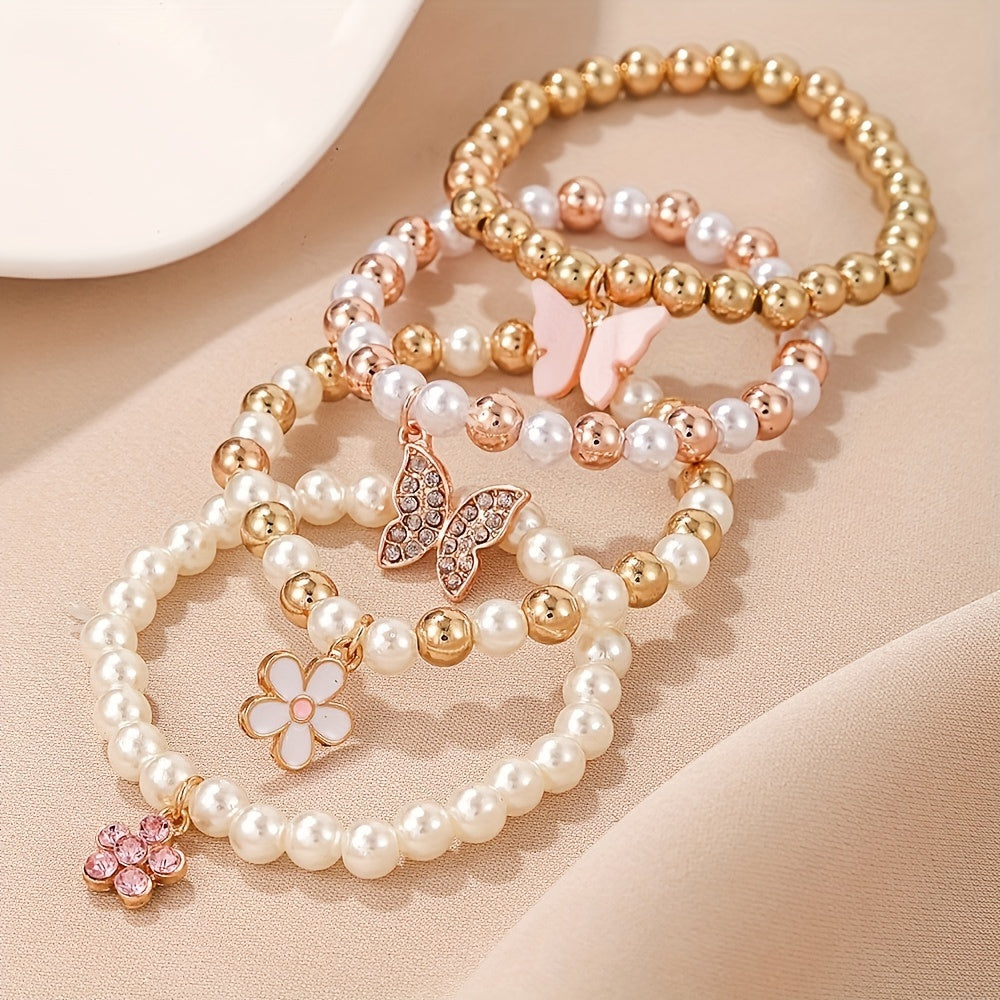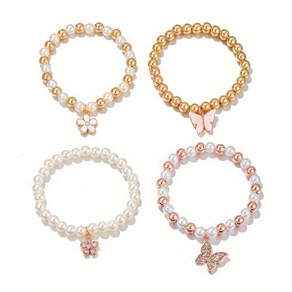 Set of 4 Butterfly & Daisy Heart Pendant Bracelets
