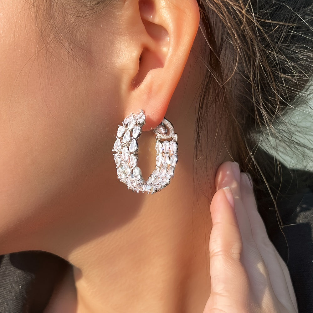 Earring Size: 3.2cm (1.26inch) Material : 5A Cubic Zirconia Paved