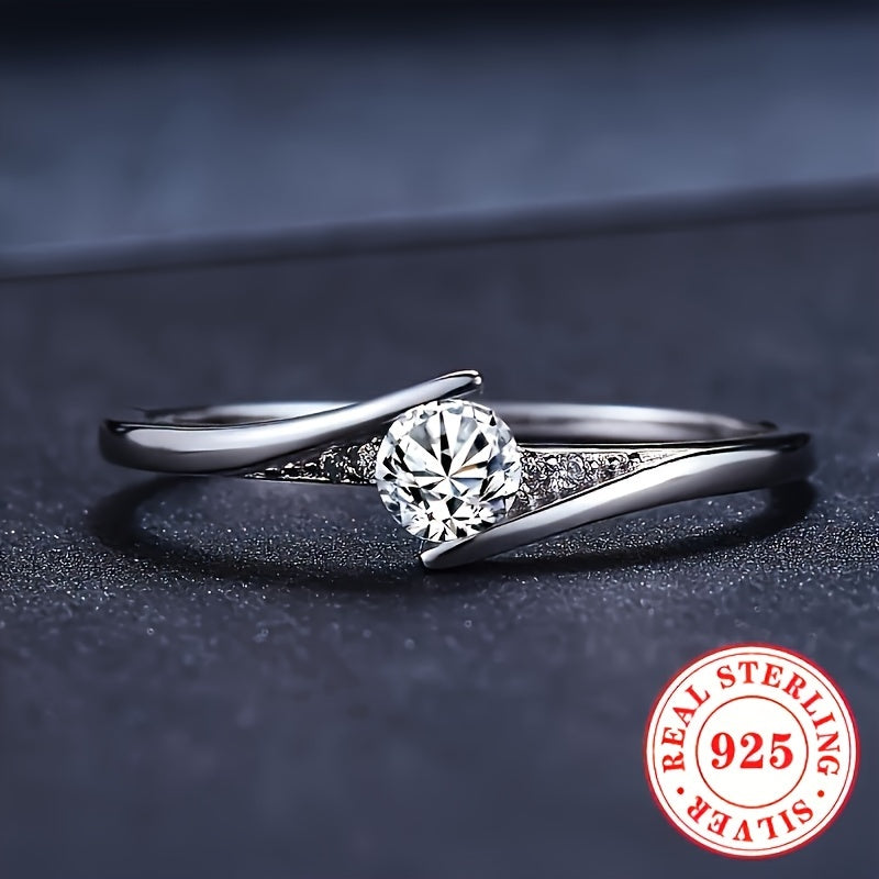 Synthetic Cubic Zirconia Round Solitaire Engagement Ring