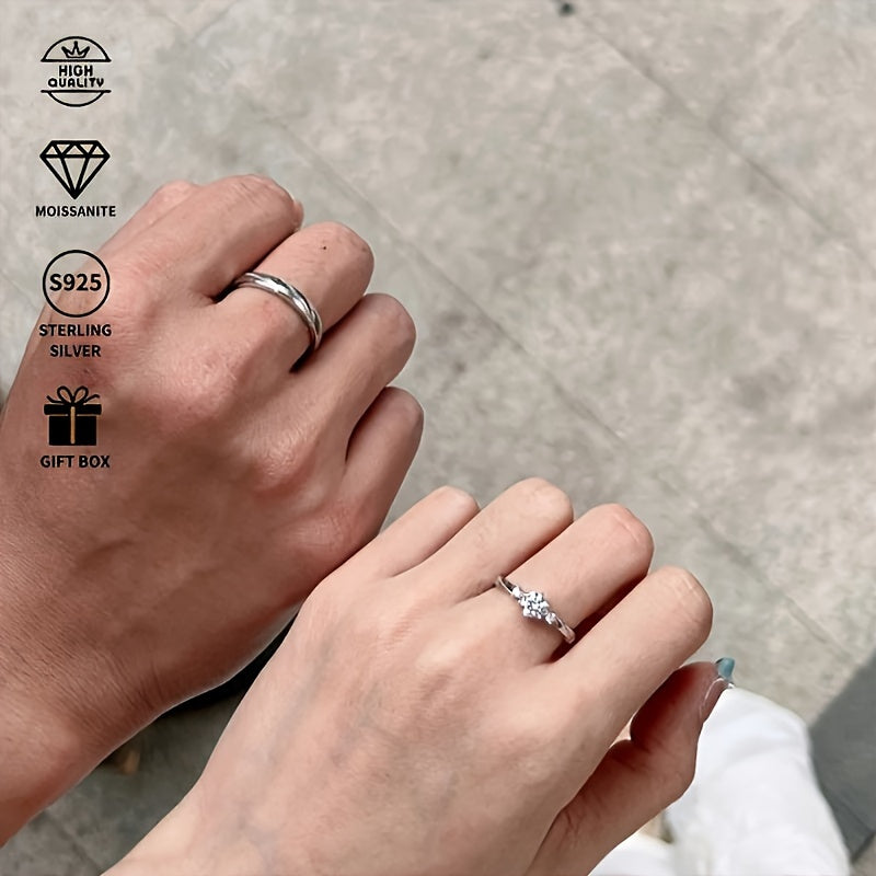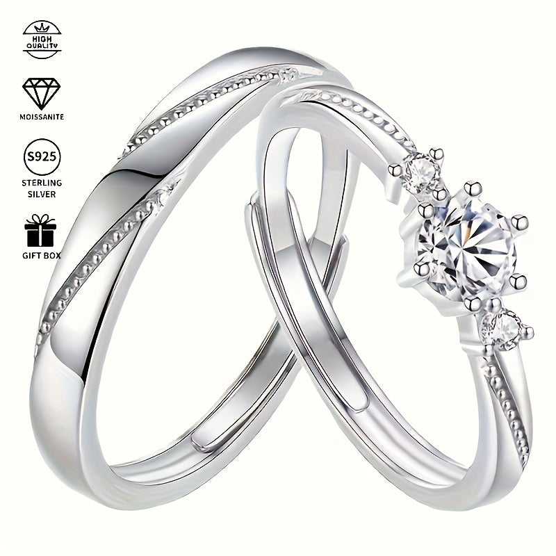 2pcs Exquisite 925 Sterling Silver 0.5 Carat Moissanite Couple Rings