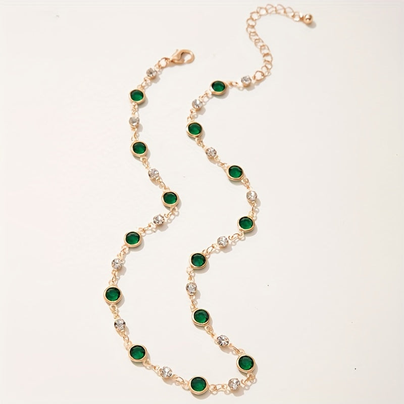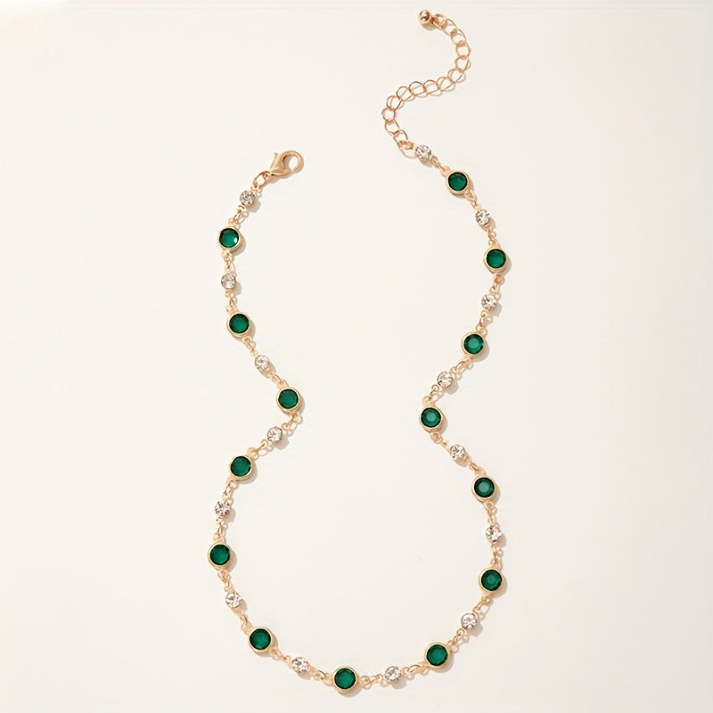 Vibrant Retro Green Synthetic Gemstone Chain Necklace