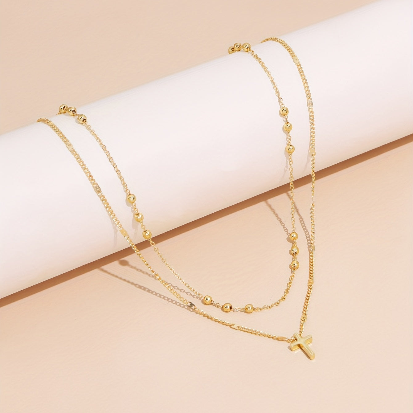 Vintage-Inspired Double Layer Cross Pendant Necklace